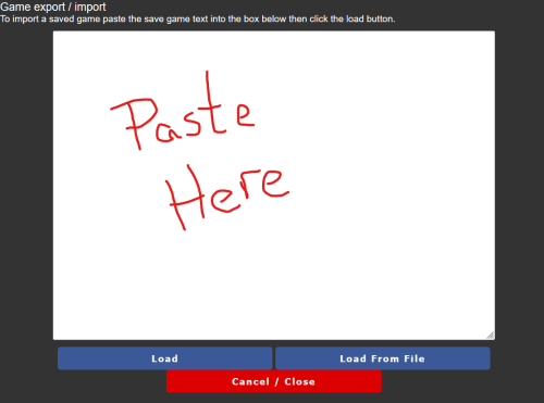 (4) To import, or load a save from a file click the Import button. There you can either paste the save text of load a save from file.